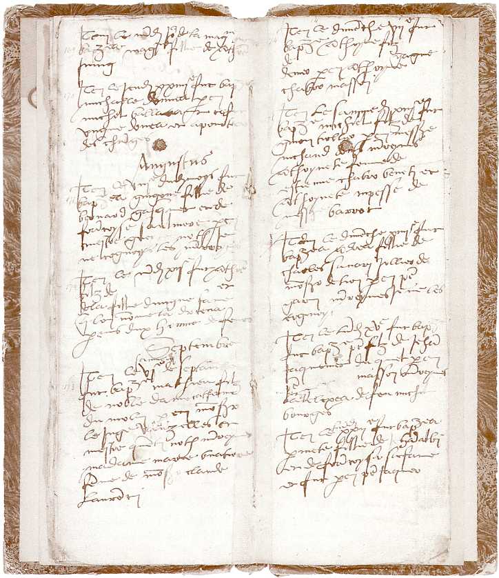 Les registres paroissiaux, tenus par les curés, furent rendus obligatoires par l'ordonnance royale de Villers-Cotteret, prise en 1539. Rédigés désormais en français comme tous les actes de procédure, ils doivent mentionner le baptême, le mariage et la sépulture de tout sujet du roi de France. Il arrive, le plus souvent, qu'ils donnent aussi des indications sur les ascendants, les témoins, les parrain et marraine. Ces registres paroissiaux ont tenu lieu d'état civil jusqu'à la Révolution, époque à laquelle cette fonction fut confiée aux communes. Les Archives Municipales conservent aussi des registres protestants qui remontent à 1593 pour les baptêmes, 1603 pour les mariages, 1629 pour les sépultures. Ces registres sont lacunaires. Certains d'entre eux sont conservés à Genève, ville où se sont réfugiés nombre de protestants venus de Lyon. En vue de faciliter les recherches des généalogistes lyonnais, les Archives Municipales ont pris l'initiative, en 1990, d'en demander la copie sur microfilm aux Archives d'Etat de Genève. On expose ici le plus ancien registre lyonnais qui nous soit parvenu. Il y est fait état des baptêmes célébrés à la paroisse Saint-Pierre-le-Vieux, de 1532 à 1545. L'église de cette paroisse se trouvait dans le quartier de St-Georges, à l'emplacement de la place Benoît Crépu, et fut démolie en 1866. Le registre est ouvert aux mois d'août et septembre 1539 (ff° 13v°-14r°). On remarquera le petit nombre des baptêmes : seulement deux pour le mois d'août, sept pour le mois suivant. La formule utilisée indique le jour et le quantième où a été donné le sacrement. L'identité des parents ainsi que celle des parrain et marraine sont également précisé. A titre d'exemple, voici la transcription de l'acte coté 173 qui concerne des familles lyonnaises connues : "Septembre Notons, au passage, qu'on trouve, dans ce même registre, d'autres cas de double parrainage (acte 179, 181, 182, etc.). * Buatier. Famille consulaire attestée à Lyon dès le 14e siècle. * Du Moulin. Le nom est assez commun. On trouve à Lyon, au 15e siècle, une famille lyonnaise de ce nom, originaire de Fontenay en Brie. Jeanne de Meaux, veuve de Jean du Moulin, est inhumée aux Célestins, le 14 mai 1433. Son fils, Pierre du Moulin, devînt archevêque de Toulouse, 1431-1452. Au 16e siècle, l'écrivain Antoine du Moulin était établi à Lyon où il écrivit de nombreuses oeuvres en prose et en vers. Valet de chambre de la reine de Navarre, il fut l'éditeur des oeuvres de Marot, travailla avec les grands libraires lyonnais tels que Rouillé et de Tournes. * Laurencin. Dès le 13e siècle, des familles de ce nom sont présentes autour de Lyon : Brignais, Ecully, St-Symphorien. Le plus ancien que nous trouvons établi à Lyon, est Nicolas de Laurencin, albergier (aubergiste) vers la fontaine de Gourguillon. Etienne, son fils, fut huit fois conseiller de ville. On rencontre différents membres de la famille dans l'Echevinat lyonnais. Il s'agit probablement de Claude II Laurencin qui fut six fois échevin. * Vauzelles. Célèbre famille consulaire qui s'est particulièment illustrée au 16e siècle, tant en littérature que dans le domaine des oeuvres sociales avec la création de l'Aumône Générale, en 1533. La devise de cette famille était Crainte de Dieu vaut zèle. Dans l'acte cité, il pourrait s'agir de Mathieu de Vauzelles, avocat au parlement des Dombes et à la Sénéchaussée. Bibl. - Claude Bréghot du Lut & Antoine Péricaud, Biographie lyonnaise ou Catalogue des Lyonnais dignes de mémoire, Lyon, Boitel, 1839. - Jean Tricou, Armorial et répertoire lyonnais, Paris, G. Saffroy, 1965-1976, 7 vol. parus (la suite inédite est conservée, sous forme de fiches manuscrites, aux Archives Municipales). |